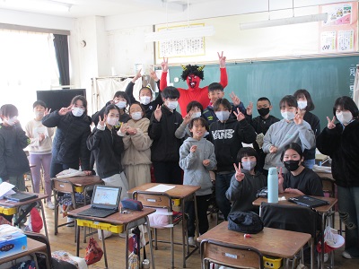 鬼は6年教室にも出現。こちらでは仲良く記念撮影でした。
