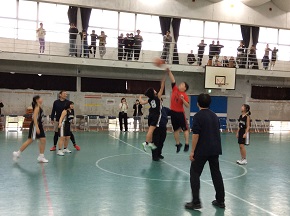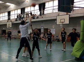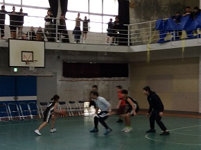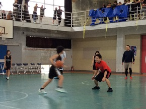 ミニバス部のお別れ試合を行いました。6年生チームと職員選抜チームが対戦。互いに好プレー続出の白熱した戦いとなり、会場は大盛り上がりでした。