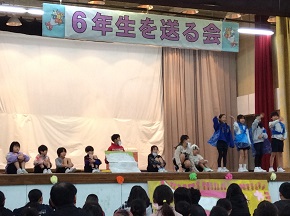 3月に入り、いよいよ6年生の卒業が迫ってきました。今日は6年生を送る会を実施しました。各学年、学習したことの発表を織り交ぜながら、6年生への感謝の気持ち、頑張って!のエールを送りました。6年生からは、かっこいいダンスや跳び箱の披露、みんなへの感謝の言葉が発表されました。たくさんの保護者の皆様においでいただき、子供たちは、張り切って発表をしていました。