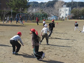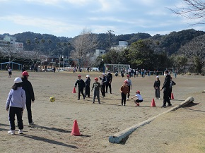 ロング昼休みを活用した、御宿っ子タイムがありました。学年縦割りの班で、6年生の計画による遊びをする時間です。体育館ではドッジボール、グラウンドでは”こおり鬼”や”9マス鬼”などの鬼ごっこで、楽しそうに遊ぶ様子が見られました。