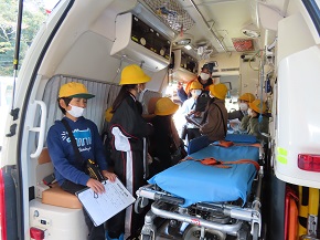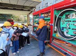 3年生が、社会科の学習で勝浦消防署に行きました。救急車の中や消防車の装備を見学したり、防火服とヘルメットを着用させていただいて放水体験をしたり…。たくさんの発見・気づきのある学習となりました。消防士の皆さんは、火災が起きた時には少しでも早く現場に行き、そこにいる人を助けたい、少しでも火災を減らしたいという思いで、日々、訓練や準備をしているとのことでした。子供たちの質問にも丁寧に答えていただき、ありがたかったです。勝浦消防署の皆さんには、大変お世話になりました。