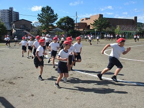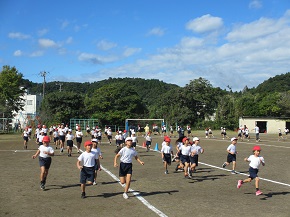 今日から業間マラソンが始まりました。1・2年生は3分間、3・4年生は4分間、5・6年生は5分間走ります。11月13日に予定されているなぎさマラソンに向けて、練習を重ねていきます。