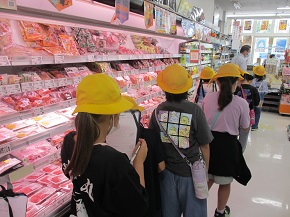 社会科の学習で、スーパーおおたやさんに見学に行きました。売り場を案内していただいたり、普通は入ることのできないバックヤードを見せていただいたりしました。お店は、どんな工夫や努力をしているのか、学ぶことができました。
