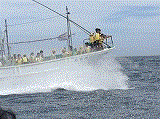 御宿小学校と布施小学校の6年生が、岩和田の漁港で合流した後、2隻の漁船に乗り組み乗船体験を行いました。