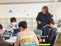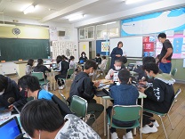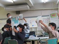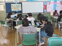 地域おこし協力隊の方から御宿町の地域色パレット作りのお話を聞きました。御宿らしい「色」を見つけて御宿町の文化資源にしていこうという計画です。参加した子ども達も関心をもって聞いていました。