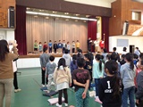今回の全校群読は,「音読五十音」。「あいうえおんどく あいはじめ・・・」元気な声が体育館に響きました。