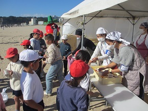 本日、本校の伝統行事であるなぎさマラソン大会を実施しました。澄み切った青空の下、子供たちはこれまでの練習の成果を発揮して、一生懸命に走りました。たくさんの保護者の皆様に大きな声援をいただき、また安全を見守っていただき、お陰様で無事に大会を終えることができました。走った後には、今年もイセエビ汁を堪能しました。エビアミーゴも応援に駆けつけてくれて、子供たちは大喜びでした。関わってくださったすべての皆様に感謝いたします。