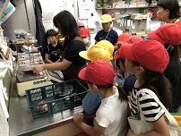 店内やバックヤードの見学をした後、お店の方が丁寧に子どもたちの質問に答えてくださいました。最後にお家の方に頼まれたものの買い物をして、学校に帰ってきました。忙しい時間帯にもかかわらず対応していただきありがとうございました。子どもたちは貴重な経験をすることができました。