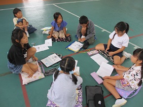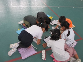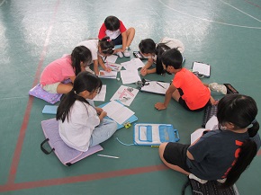 10月3日の校外学習(鴨川シーワールド)に向け、グループごとに活動計画を話し合いました。グループは、1,2,3年混合のメンバーです。いちばん年長の3年生が中心になって話し合いを進めていました。10月3日が楽しみです。お天気に恵まれますように!