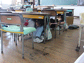 子ども達は地震発生を知らせる放送を聞いてすぐ、机の下に潜ることができ、その後も迅速にライフジャケットを着けてろう下に並ぶことができました。子ども達の地震に対する意識の高さを感じることができました。